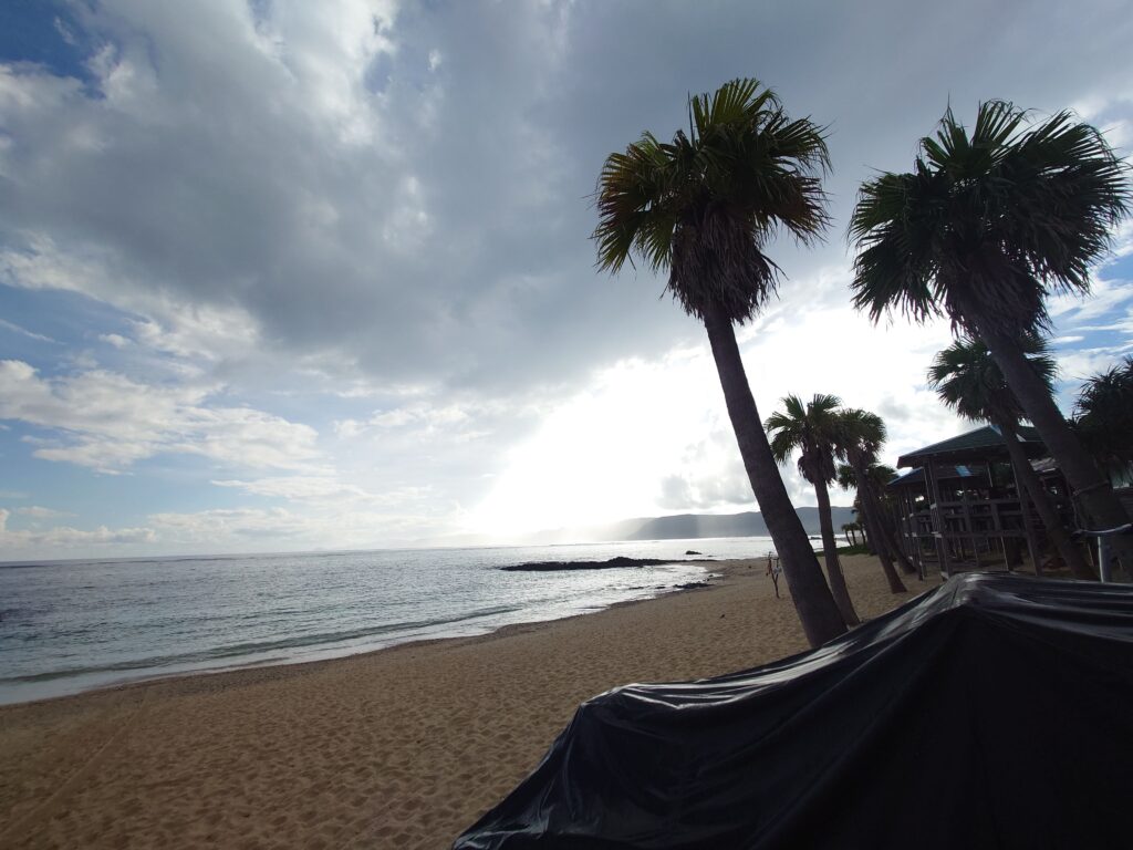 写真を撮ったのが、ちょうど夕方のスコールのタイミング。曇ってしまってますが、まあこれも南国ならではですね。